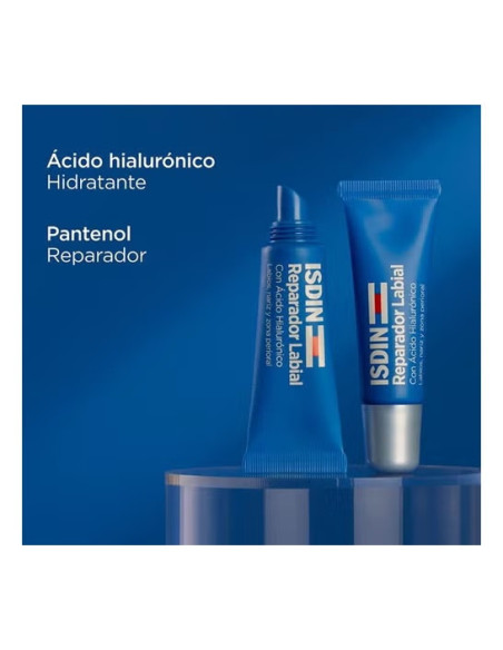 ISDIN Bálsamo Labial Reparador con Ácido Hialurónico 10ml es un intenso tratamiento protector y reparador para los labios, la nariz y el área perioral.