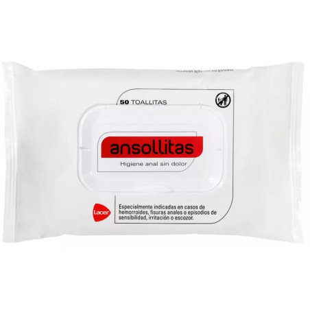 Higiene diaria para el cuidado de hemorroides: Ansollitas 50 Toallitas. Estas toallitas biodegradables, fabricadas con celulosa y fibra 100% natural, están diseñadas para aliviar el dolor y la irritación en la zona anal, proporcionando una limpieza efectiva. Son ideales para quienes padecen hemorroides, fisuras anales o molestias de picazón e irritación. Gracias a su contenido de aloe vera, ofrecen un efecto calmante y refrescante.