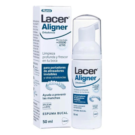 Lacer Aligner Ortodoncia Espuma 50 ml es tu aliado perfecto para mantener una higiene bucal impecable mientras usas ortodoncia invisible. Su fórmula con microburbujas de oxígeno activo elimina bacterias y residuos, dejando una frescura duradera y previniendo manchas gracias a la lactoferrina. ¡Cuida tu sonrisa con Lacer!