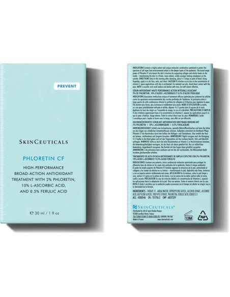 Descubre el poder de la protección avanzada contra el envejecimiento con el suero antioxidante Phloretin CF de SkinCeuticals. Formulado con un 10% de vitamina C pura, este tratamiento diario está diseñado para disminuir la apariencia de líneas de expresión y manchas de hiperpigmentación. Su innovadora fórmula combate los efectos nocivos de los radicales libres generados por la exposición a la radiación UVA/UVB, la radiación infrarroja IR y la contaminación ambiental.
